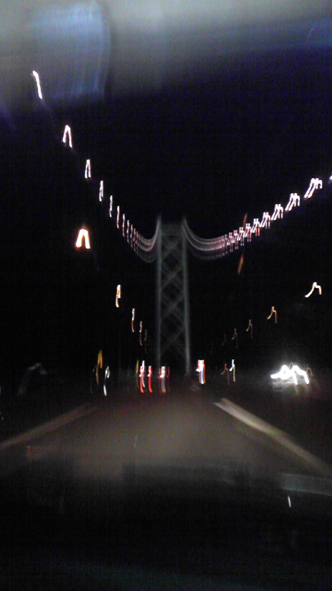 ピンボケですが、本州離れ海外脱出! 淡路島に入国しました。 本日の宿まで、もう一息! 津久井