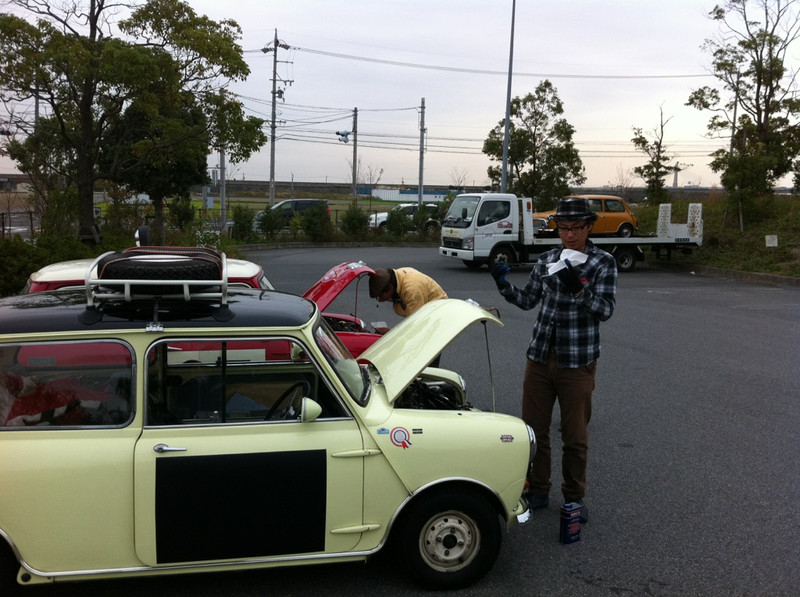 まずは初日のゴールに到着。ここは淡路島です〜気持ち暖かいような? 何事もなく順調に来れて、ミニって古いのに丈夫ですよね! 野口