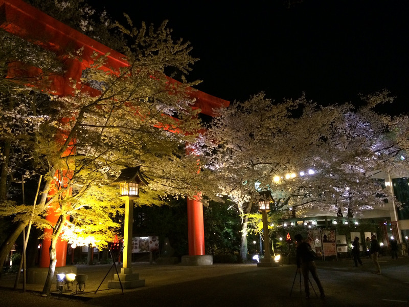 暖かい日が続き、近所の神社の桜が満開なので夜桜見物に。