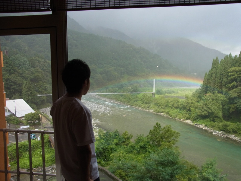 良い予感? 綺麗な虹に感動?している阿久津メカ。