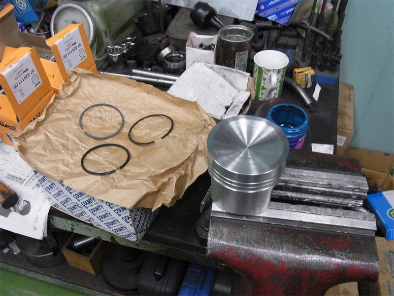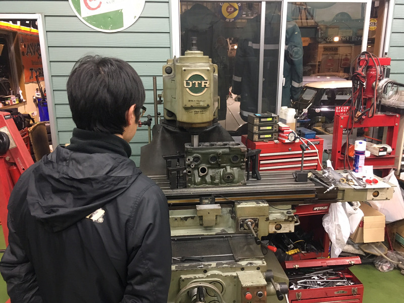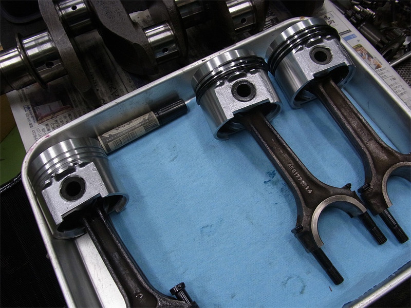 オーバーホール中の1275Sラリー仕様、ピストン組み付け、カムの取り付け作業をしています。