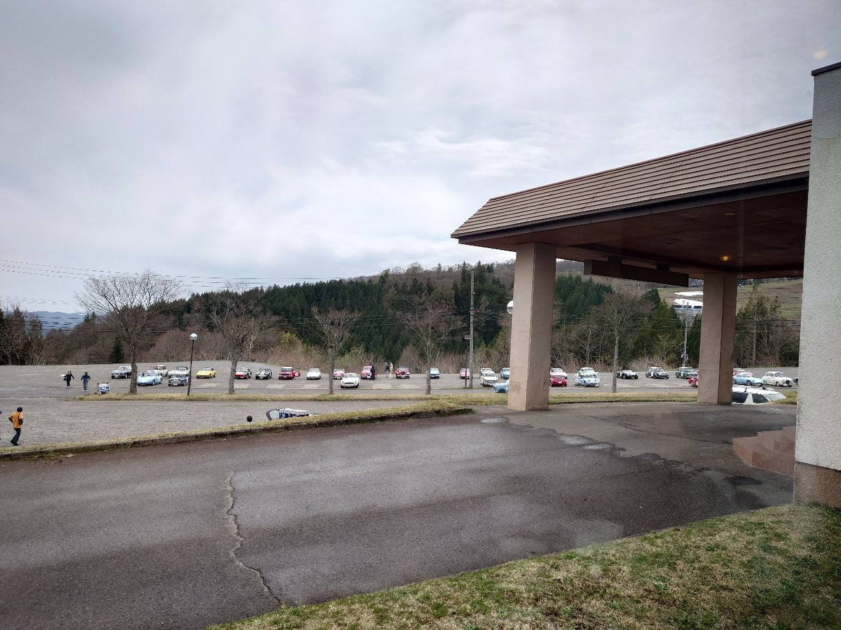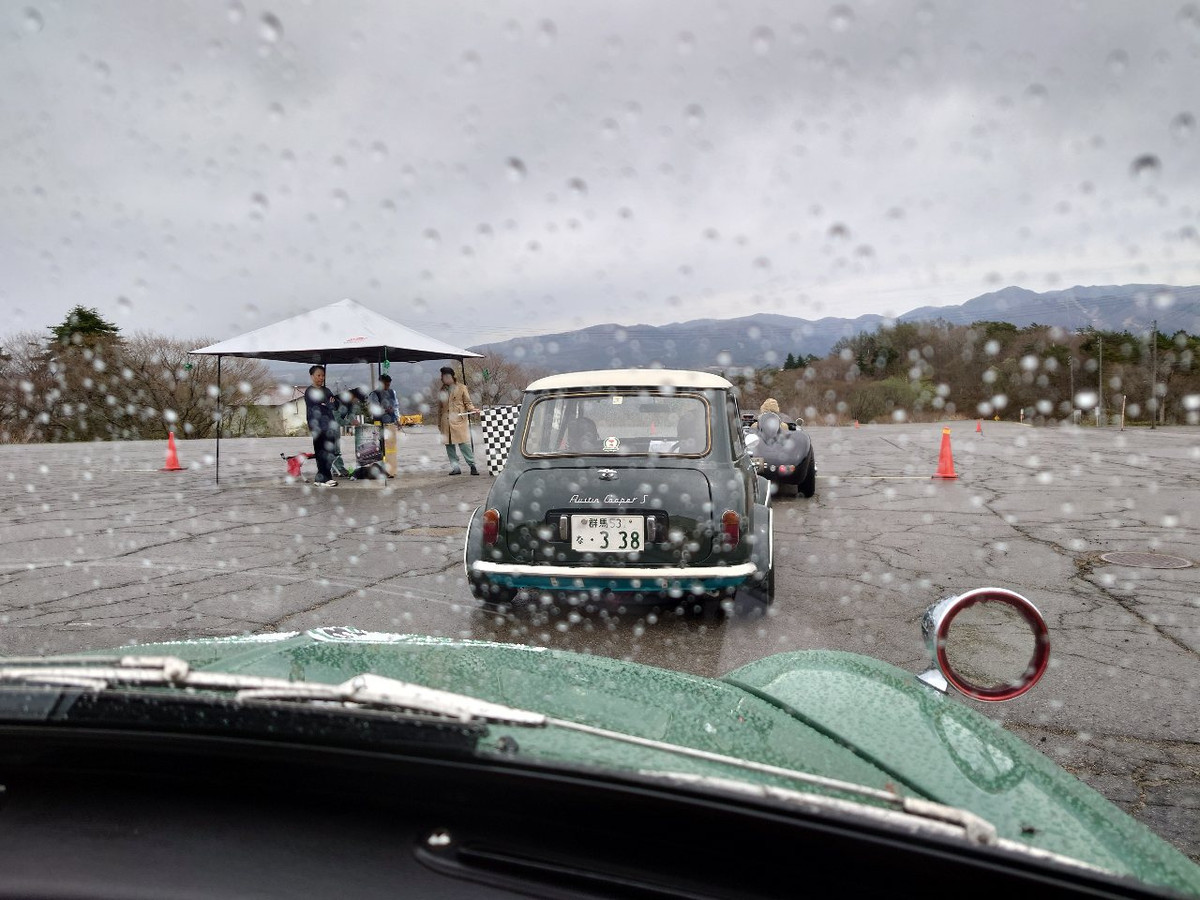 降らさずにはいられない!?お昼のジムカーナ、ダイナランド駐車場にて。この後晴れました(;・∀・)。